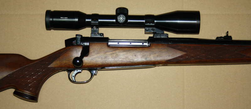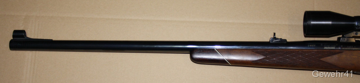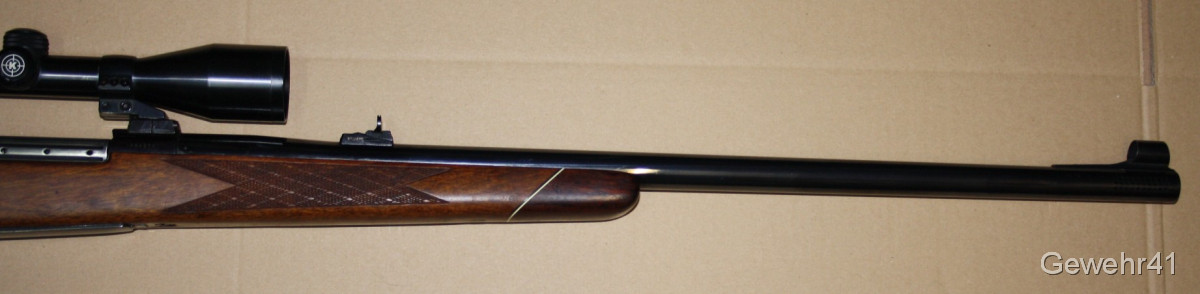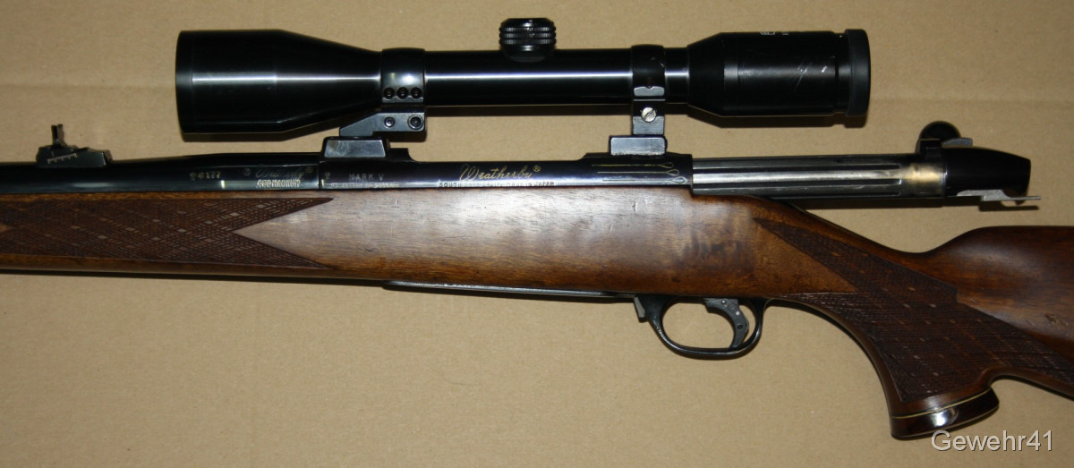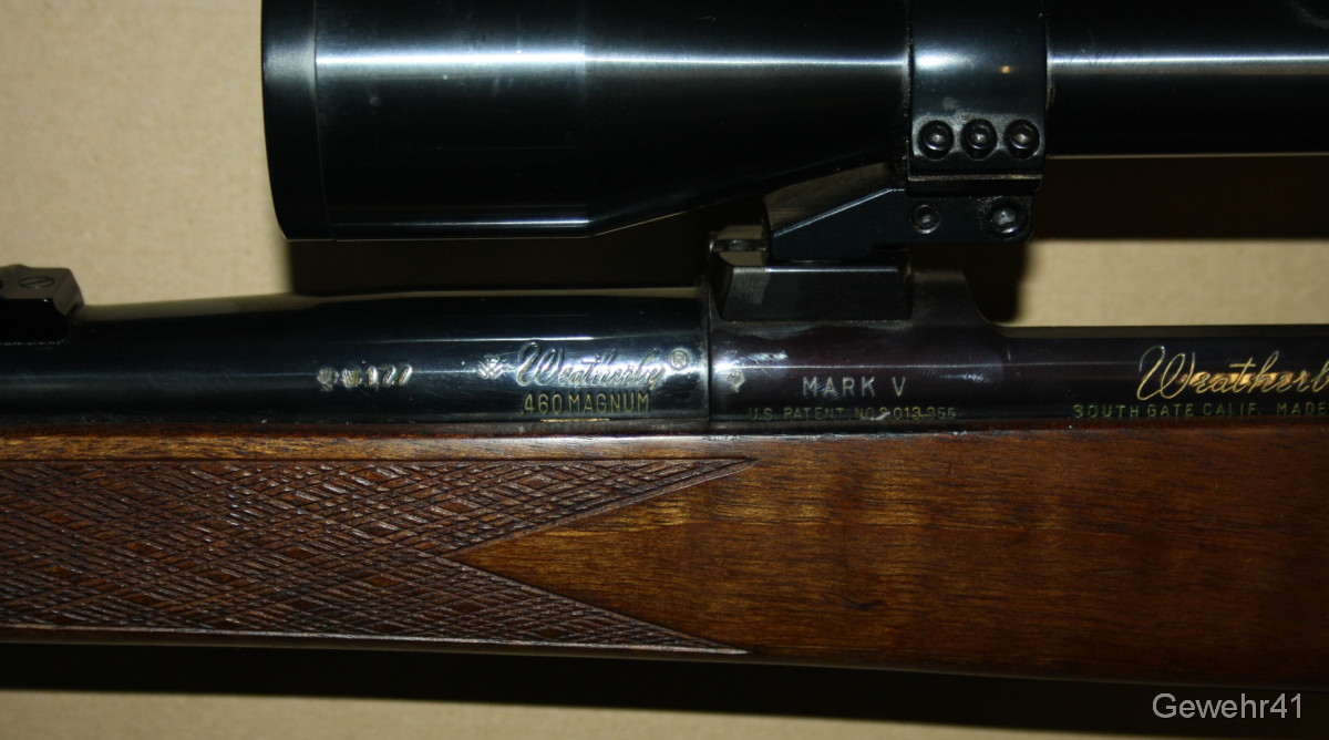 Aus gepflegtem Erstbesitz kommt hier dieser Jagd-Repetierer Weatherby Mark V im starken Kal. .460 Weatherby Magnum zur Auktion. Montiert ist ein ZF Kahles Helia-S 6x42 mit Absehen 1 auf Schwenkmontage. Gesamtlänge 120cm, Lauflänge 64,5cm, Schaftlänge 37cm. Lauf und Funktion einwandfrei.