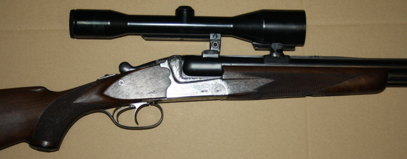 Aus gepflegtem Erstbesitz kommt hier diese Bockbüchsflinte Sauer&Sohn Modell 54 im Kal. 16/70 & 7x65R zur Auktion. Montiert ist ein ZF Hensoldt 6x42 mit Absehen 4 auf Suhler Einhakmontage. Gesamtlänge 106,5cm, Lauflänge 65cm, Schaftlänge 35,5cm. Lauf und Funktion einwandfrei. Dazu gibts auch einen mündungslangen Einstecklauf im Kal. .22 Hornet.