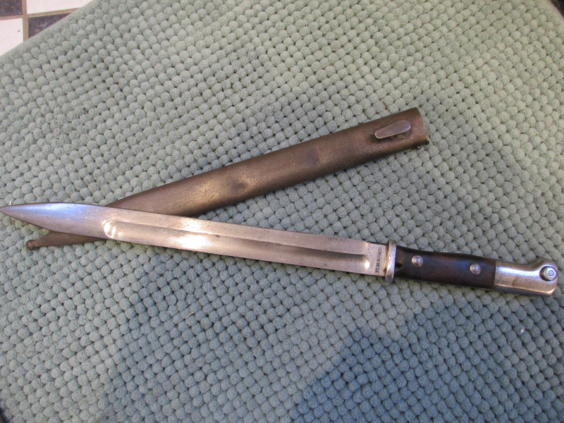 Bajonett mit Scheide Samson Werk , Holzgriffschalen, Drücker funktioniert. Länge 46 cm