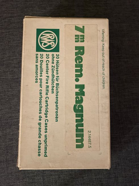 7mm Rem. Magnum Hülsen für Büchsenpatronen ohne Zündhütchen.