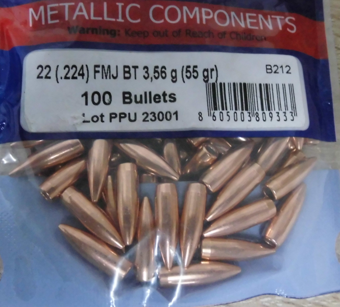 Hallo - biete hier 100 Stück Geschosse von PPU cal .22 / dia. 224 für z.B. 223rem, 22-250rem usw. mit 55gr VMJ