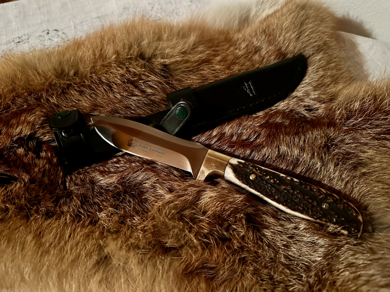 Zum Verkauf steht ein Orginal Puma waidmann Messer (Dachbodenfund) mit Hirschhorngriff, einer Klingenlänge von 11cm und einer Gesamtlänge von 23cm inkl. der abgebildeten Orginalen Puma Scheide.