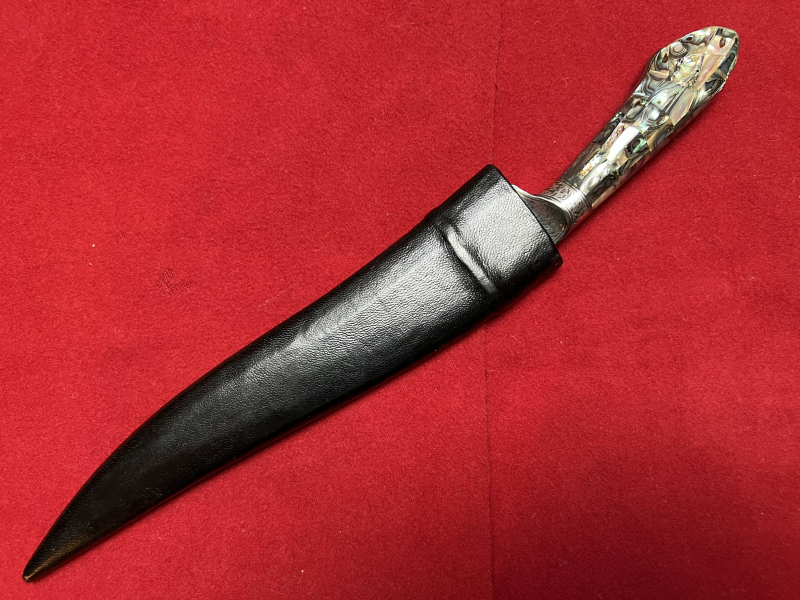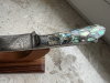 Der Griff besteht aus wunderschön schimmernden Perlmuttstücken.