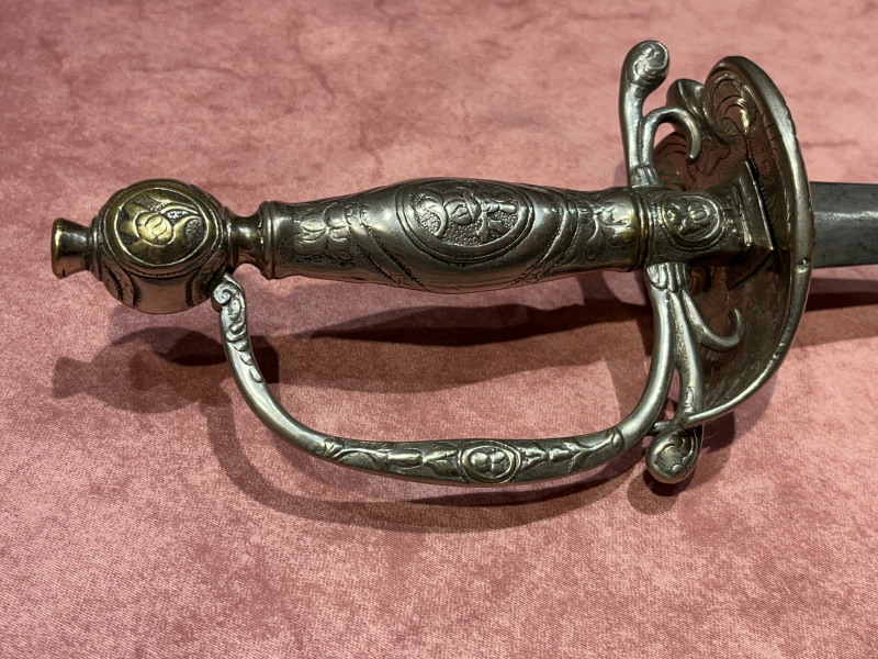 Schöner Degen mit versilbertem Messinggefäß, Aufbau ident zum österreichischen Offiziersdegen M1798/1811 oder eine Variante davon.
