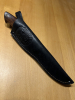 Natürlich gibt es auch die passende Starkleder-Scheide dazu. Der Messerständer ist nicht Teil der Auktion.