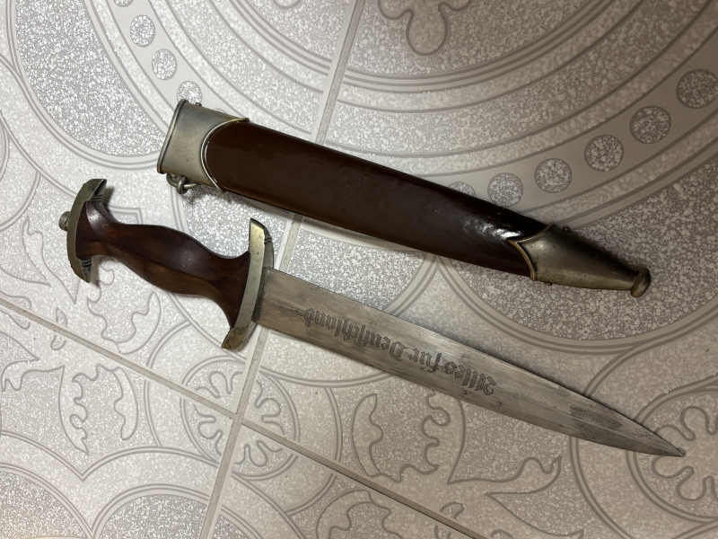 Thüringer SA Dolch. Sehr seltener Hersteller (auf Bildern zu sehen). Zustand 2. Original. Länge: 36,5cm. Länge der Klinge: 22cm, Klingen Breite: 3,4cm.