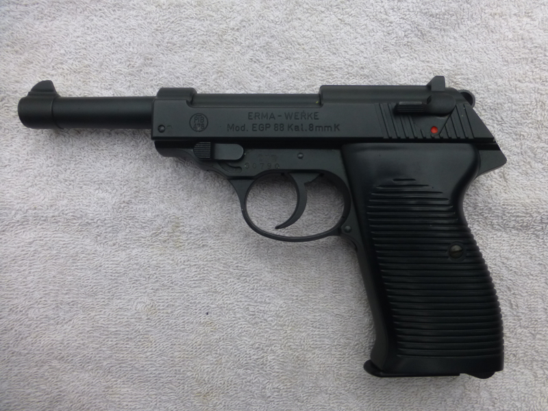 ERMA Schreckschußwaffe EGP 88 in 8mm k – Erbstück aus Sammlung – mit originalem, nummerngleichem Karton, Anstecknadel und zweitem Magazin – alles in TOP Zustand, nur der Karton ist etwas lädiert – Griffschalen sind aus Kunststoff – sieht ungeschossen aus – siehe Bilder – lässt sich schlecht fotografieren, aber die Oberfläche ist TOP – Privatverkauf – Bitte myGun beachten!