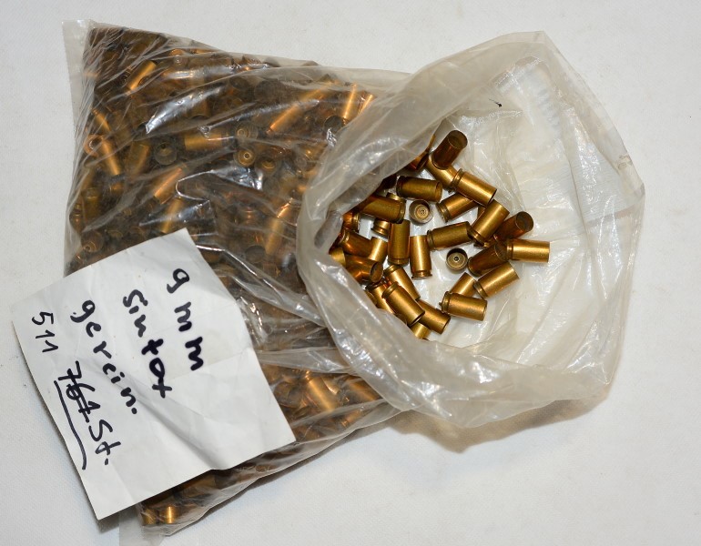 511 Hülsen cal. 9mm Para, Marke Sintox, die Hülsen wurden nur einmal verwendet und wurden vor Jahren gereinigt, noch nicht entzündert