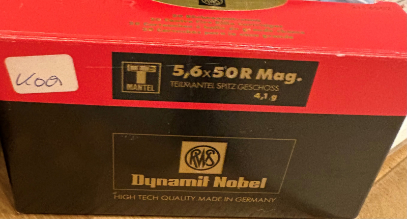 Zum Verkauf stehen 60 Schuss 5,6x50 R Mag. original RWS Teilmantel Spitz Geschoss 4,1g.