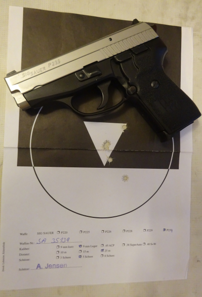 1 Pistole 9mm Para; P239; Herst. SIG-Sauer in Eckernförde, Bauj. 1998.