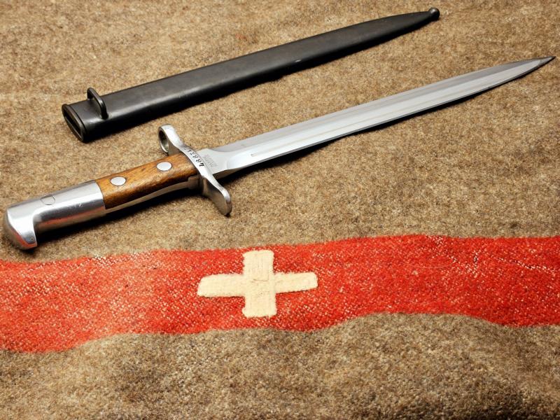 gestempelt mit dem Hersteller Elsener Schwyz und Seriennummer