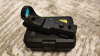 C-More-Klon mit komplettem Zubehör in Originalverpackung. Ersatzakku und Sonnenblende für das Rotpunktvisier sind enthalten. Das Rotpunktvisier ist auf einer Montageplattform, 22-mm- oder Picatinny-Schiene montiert. Der Akku befindet sich in der Verpackung.