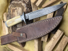 Typ: Handgefertigtes Bowie-Messer aus Damaststahl. Knochen-Griff, Damast-Parierstange, Glasbrecher. Inklusive Scheide.