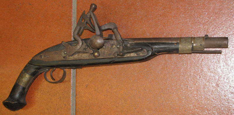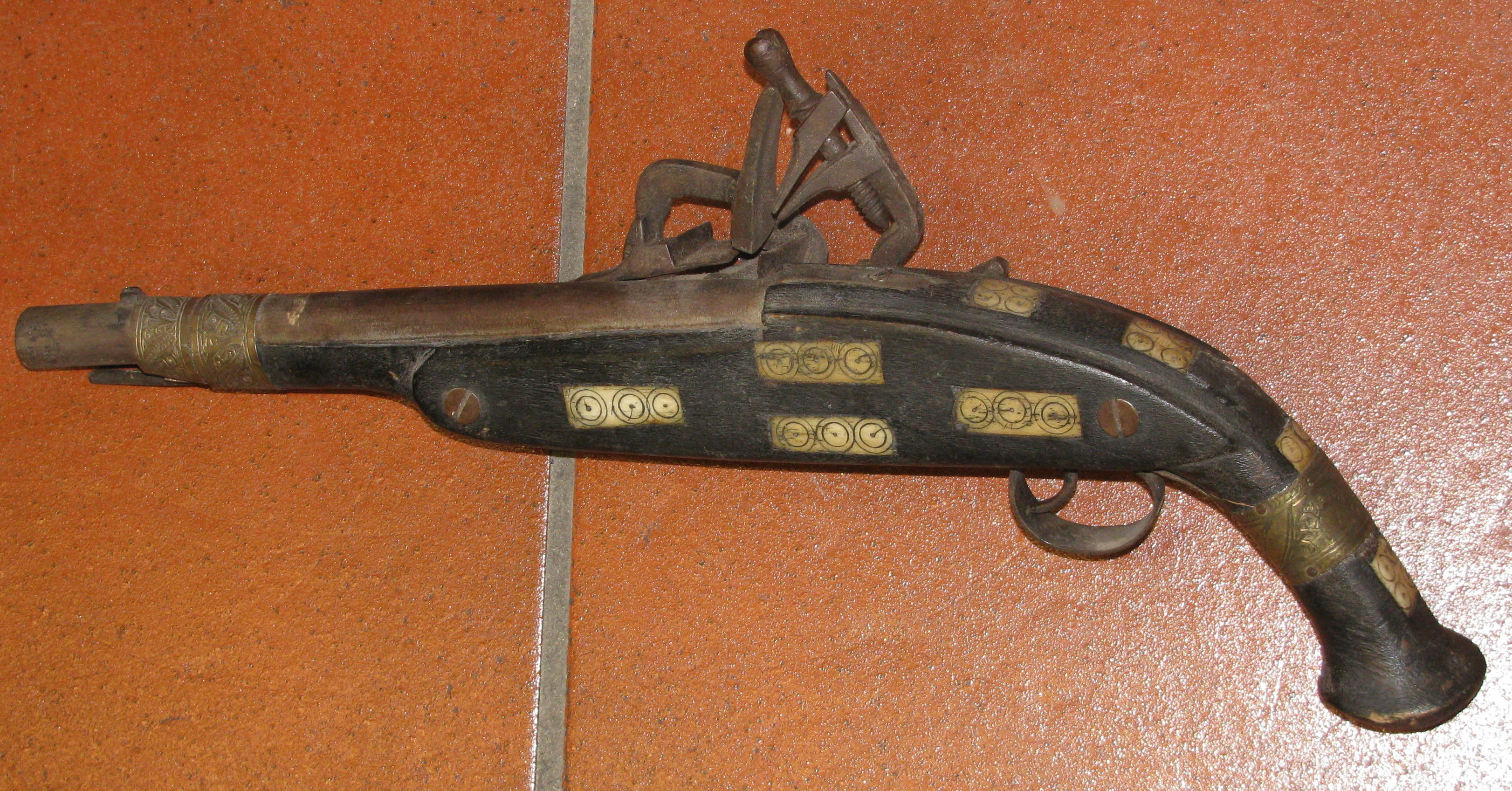 Zum Verkauf kommt eine Steinschloss Vorderlader Gewehr aus dem Orient, mit Sichertheit schon älter