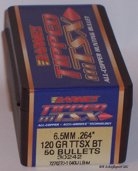 Barnes Geschosse speziell das TTSX Geschoss ( mit Polymerspitze) besitzt einen Grundkörper aus Vollkupfer und pilzt zuverlässig auf. Mit dem TTSX-Bullet entwickelte Barnes das TSX noch einmal weiter. An der Wirkung änderte sich nichts, gewandelt hat sich die Außenballistik. Auch das Tipped Triple Shock hat eine Hohlspitze, nur bleibt sie nicht offen, sondern wird durch eine ballistische Polymerspitze verschlossen.