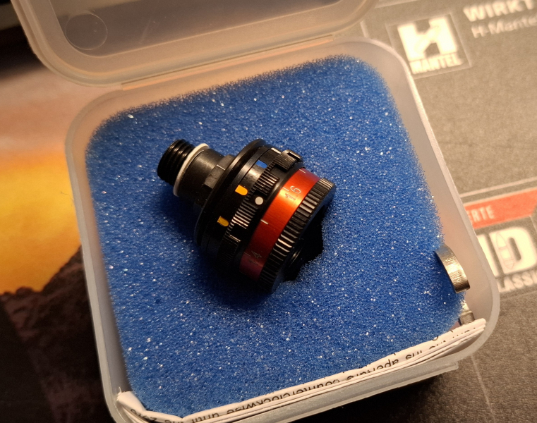 Irisblende mit speziellem 5-Farbfilter für das Schießen in geschlossenen Schießanlagen mit Kunstlicht