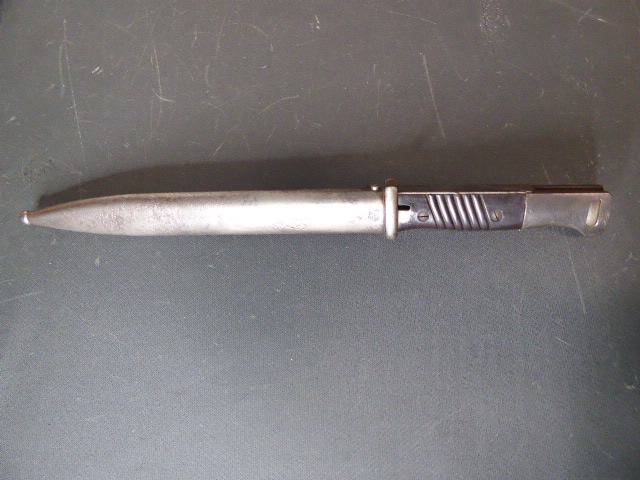 Aus meiner Sammlung gebe ich, ein 94/98 3. Reich Bajo Nummerngleich mit Scheide 7565 Hersteller Code 42 f Ze ab. Griff zwei braune Bakelit Schalen. Griffknauf mit Punze und einseitig XX Ätzung. Klinge beidseitig mit Ätzungen, eine Seite 5 XX Panzerdivision Wiking und Unterschrift, andere Seite mit XX Logo. Klinge auf der Fehlschärfe eine Seite mit Nr. 7565 andere Seite mit Code 42 f Ze, das Gleich ist Identisch auf beiden Seiten der Scheide. Ob die Ätzungen Zeitgenössig sind? kann ich nicht unterscheiden und auch nicht sagen, sieht auf jedenfalls sehr Gut aus, könnte auch original sein? aber das muss jeder für sich entscheiden, die Fotos sind Aussagekräftig genug. Das Teil ist im Guten Sammelwürdigen Zustand. Alles andere entnehmen Sie Bitte den Fotos. Gesamtlänge: 40,5 cm, ohne Scheide: 38,7 cm, Klingenlänge: 25,4 cm, Klingenbreite: 2,5 cm. Kann zu jederzeit bei mir besichtigt werden. Privatauktion keine Rücknahme und Garantie.