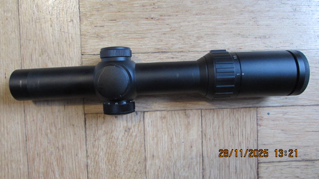 Sie bieten auf das abgebildete Zielfernrohr. Zustand ist gebraucht, Gebrauchsspuren am Mittelrohr von der früheren Montage, Absehen 4 LP grün/rot nicht mitvergrößernd, MR Durchmesser 30m, Dioptrieausgleich am Okular, Linsen sind in Ordnung.