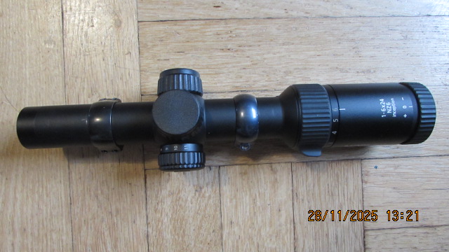 Sie bieten auf das abgebildete Zielfernrohr. Zustand ist gebraucht, Gebrauchsspuren am Mittelrohr von der vorhandenen unbekannten Schwenk-Montage (die Ringe sind unprofessionell und mit falschen und zerdengelten Schrauben befestigt), Absehen 4 LP nicht mitvergrößernd (Batterie ist leer; die Funktionsfähigkeit des Lechtpunkts wird nicht garantiert), MR Durchmesser 30m, Dioptrieausgleich am Okular, Linsen sind in Ordnung.