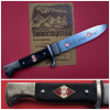 Zum Verkauf kommt dieses gebrauchte, tolle Fahrtenmesser im Top Zustand, von dem Blankwaffenhersteller KUNO RITTER aus SOLINGEN RZM M7/3 . Es befindet sich in einem zeitgemäß guten Zustand mit Gebrauchsspuren, da es ja auch genutzt wurde. Die Klinge hat kleine Altersflecken. Die Teilnehmerkarte vom Sommerlager 1939 ist mit dabei. Ohne Scheide.