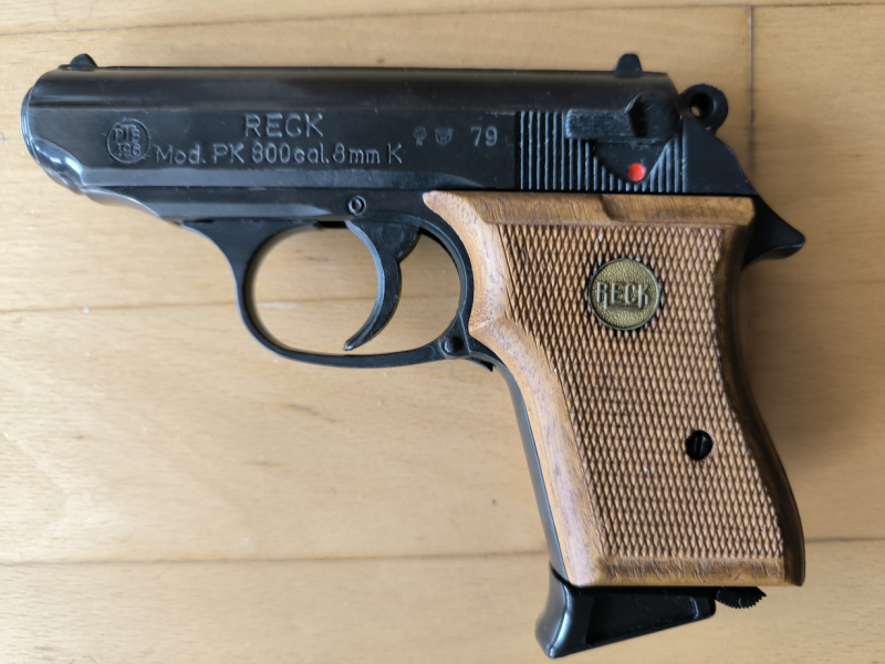 Hallo biete eine Automatic Pistole Modell PK800.IM KALIBER 8MM.KNALL.SIE IST OHNE SCHWACHES PATRONEN LAGER.BJ79.MIT HOLZGRIFFSCHALEN.DIE RECHTE GRIFFSCHALE HAT EINE KLEINE MACKE.SONST ALLERS GUT.OHNE WEITERES ZUBEHÖR