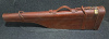 Sehr schönes , gut erhaltenes , gebrauchtes , Schinken - Leder - Waffenfutteral in klassischem Design, für zerlegbare Waffen, in Form einer „ Hammelkeule “, .aus dunkelbraunem satt glänzendem Leder.