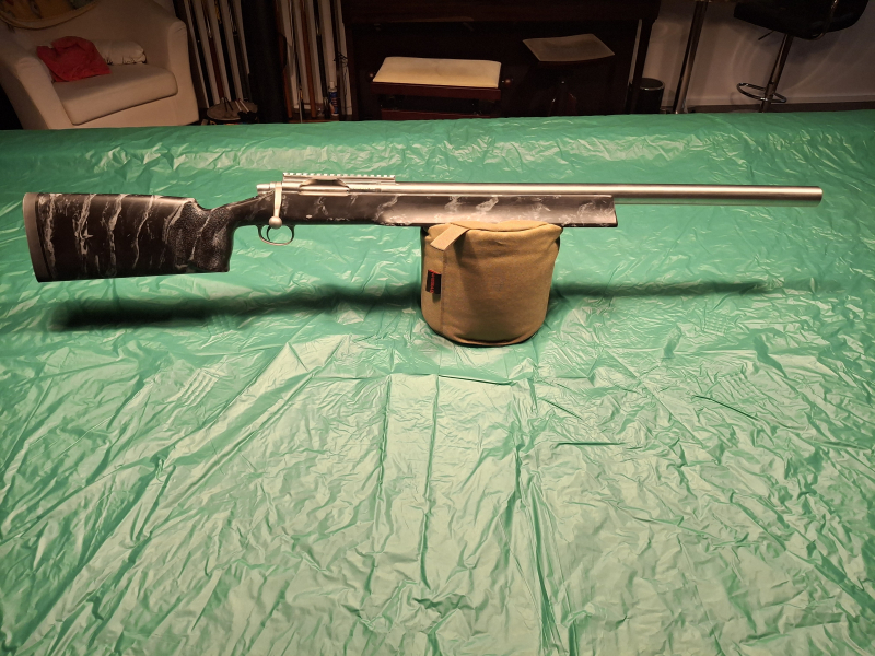 Einzellader Benchrestbüchse, Details bei Henke Online nachzulesen. Extrem präzise Waffe, bester Streukreis 5 Schuss auf 300m 12mm (Mitte Loch zu Mitte Loch)