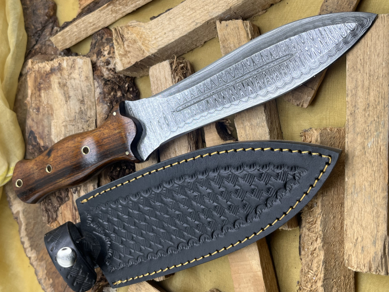Über 200 Lagen Damast • 7" Klinge • 5" Griff • Walnussholz • Full Tang • Inkl. Scheide