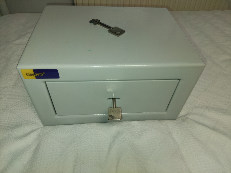 Hallo ich verkaufe meinen Kurzwaffen Tresor , der Tresor wiegt 13 kg , er ist bei der Waffenbehörde ( Landkreis Darmstadt Dieburg ) als Kurzwaffen Tresor zugelassen . Die Maße innen etwa 23 cm x 11,0 cm x 18 cm tief . die außen Maße sind 35 cm x 25 cm x 20 cm . Es sind 2 Schlüssel vorhanden . Der Tresor kann auch in Groß - Umstadt abgeholt werden. Die Namen der Hersteller sind Urheberrechtlich geschützt und dienen hier nur der Produktbeschreibung . Da ich als Privat Person verkaufe , keine Garantie und keine Rücknahme .