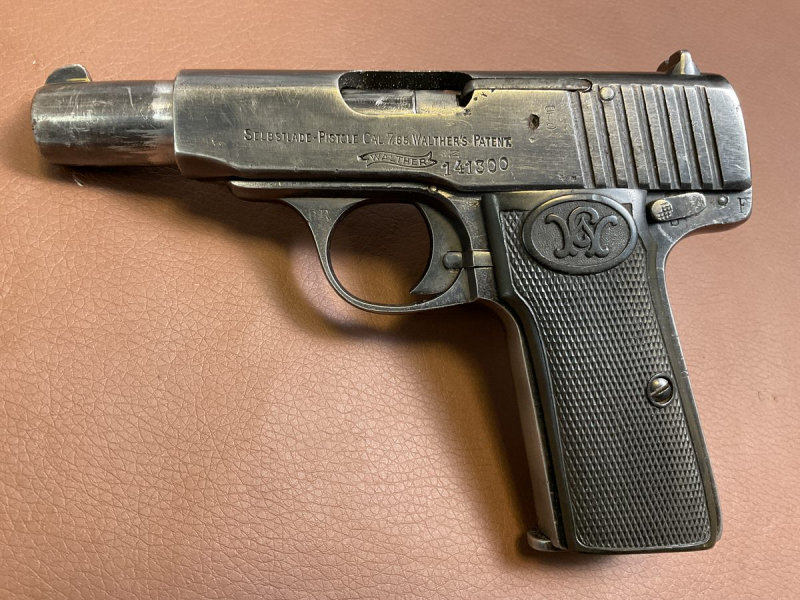 Zum Verkauf steht eine Pistole Walther Modell 4, 4. Ausführung, gefertigt in Lizenz durch Immanuel Meffert, Suhl. Die Gebrüder Rempt, Suhl, waren hierbei Zulieferer und an der Produktion beteiligt.