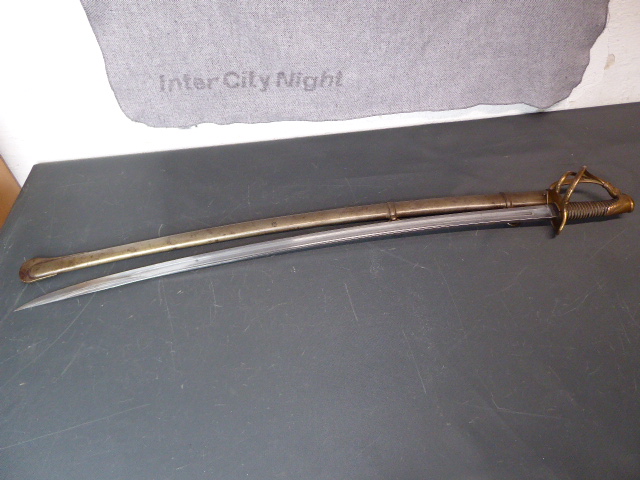 Aus meiner Sammlung gebe ich, ein alten mir Unbekannten großen Französischen/ Belgischen? Kavallerie Säbel mit Stahlscheide ab. Kenner werden es sicherlich wissen wo das Teil hingehört- Griff Holz mit Leder ummantelt und Messingdraht Wicklung. Gefäß Messing mit zwei Nebenbügeln. Breite einschneidige Klinge habe keinen Hersteller oder Punzen gefunden. Scheide Eisen mit zwei Tragebänder, am Schlepper mit Hersteller? A&E.H. im Oval. Das Teil ist im Guten Sammelwürdigen Zustand. Alles andere entnehmen Sie Bitte den Fotos. Gesamtlänge: 110 cm, ohne Scheide: 107 cm, Klingenlänge: 92 cm, Klingenbreite: 3,62 cm. Kann zu jederzeit bei mir besichtigt werden. Privatauktion keine Rücknahme und Garantie.