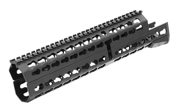 Artikelnummer: MTU027SSKA Eigenschaften • In den USA entwickelt und gefertigt • Kompatibel mit rumänischen und bulgarischen AK-Modellen sowie allen Varianten mit identischen Abmessungen • 13" verlängertes, super schlankes Handguard-System für mehr Zubehörraum und verbesserte Waffenhandhabung • 123 Keymod-kompatible Slots auf 9 Keymod-Schienen für nahezu unbegrenzte Möglichkeiten zur Zubehörmontage • Sehr leichtes Design mit 28-Slot Picatinny-Toprail, hakenfreier, abgeschrägter Kante und Durchsichtsaussparung für die Verwendung von Kimme und Korn • Inklusive 2 Keymod-kompatiblen Zubehörteilen: – Receiver-Bridge-Mount zur nahtlosen Verbindung von Handguard und Gehäuse – 4-Slot-Picatinny-Schienenabschnitt • Zweiteiliges Verriegelungssystem oben und unten, mit unauffällig platzierten internen Verriegelungsschrauben • Ergonomisches, achteckiges Profil mit strategisch platzierten Rillen für sicheren Halt und hervorragenden Bedienkomfort • Präzisionsgefertigt aus 6061‑T6 Flugzeugaluminium mit robuster Hartbeschichtung • Einfache, benutzerfreundliche Installation mit leicht verständlicher Anleitung