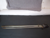 Aus meiner Sammlung gebe ich, ein alten langen Preußischen Kavallerie Degen vom Thüring. Husaren Regt. Nr. 12 mit Scheide ab. Sehr seltener Husaren Degen. Griff Bakelit. Gefäß Eisen Vernickelt einseitig zum abklappen. Einschneidige Klinge beidseitig mit Hochätzungen eine Seite mit Regiment Bezeichnung, Thüring. Husaren Regt. Nr. 12. Original Vernickelte Scheide aus Stahl mit einem festen Tragering und Trage Öse. Das Teil ist im Guten Sammelwürdigen Zustand. Alles andere entnehmen Sie Bitte den Fotos. Gesamtlänge: 93,5 cm, ohne Scheide: 91,5 cm, Klingenlänge: 78 cm, Klingenbreite: 2,4 cm. Kann zu jederzeit bei mir besichtigt werden. Privatauktion keine Rücknahme und Garantie.