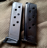 2 Magazine Walther mit Verlängerung (Nachkriegsfertigung), parkerisiert, also vermutlich für BMVg oder BMI gefertigt, und Manurhin ohne Verl., brüniert, beide 7,65 mm Browning.