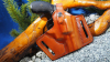 Mit dazu gibt es das abgebildete Lederholster, welches genau passend zur Waffe ist. Es ist für Rechtshandschützen ausgelegt und hält die Waffe unauffällig und sicher.