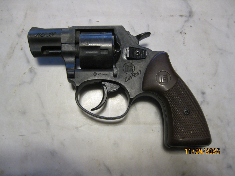 Ein defekter Revolver Rhöm RG 59 Le Petit. Die Funktion ist voll gegeben, jedoch zündet die Platzpatrone nicht ! Ich denke mal irgendwas am Schlagbolzen. PTB 527. Gebrauchtware, keine Garantie, kein Umtausch.