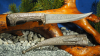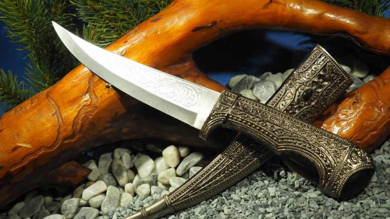 Sehr schöner, reichhaltig verzierter Krummdolch mit gravierter Edelstahlklinge und Gürtelclip !