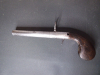 Aus meiner Sammlung gebe ich, eine alte Seltene längere Perkussions Vorderlader Pistole Hersteller unbekannt ab. Griff Holz mit Fischhaut Verschneidungen, ohne Durchbrüche oder Risse. Seltenes System in der Mitte des System Kastens ist der Versenkte Hahn mit einem Ring nach oben zu ziehen und Rastet auf einer Stellung ein, lässt sich auch sauber wieder abschlagen. Sehr dicker innen glatter Lauf. Gesamtlänge: 29,6 cm, Lauflänge: 13,5 cm, Kaliber: 13 mm. Alles andere entnehmen Sie Bitte den Fotos. Kann zu jederzeit bei mir besichtigt werden. Privatauktion keine Rücknahme und Garantie.