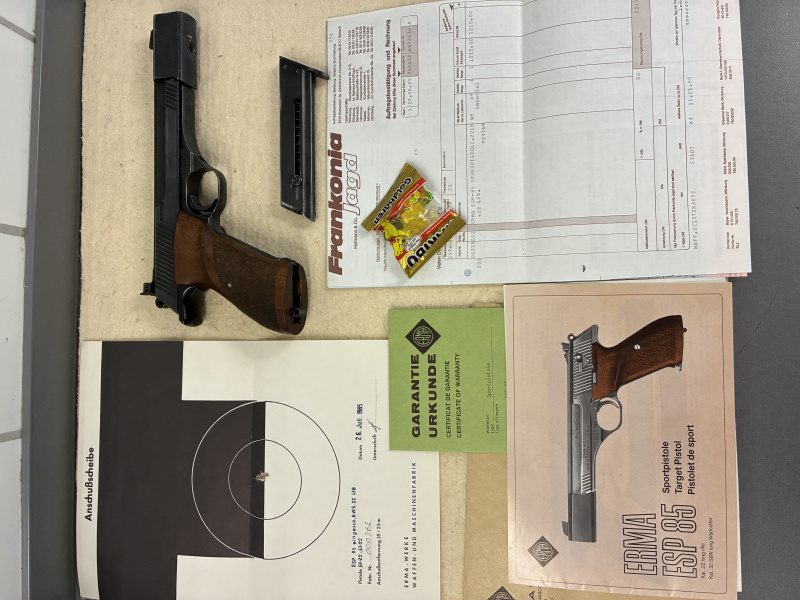 hier biete ich meine Erma ESP 85 Sportpistole in .22 long rifle zum Verkauf an.