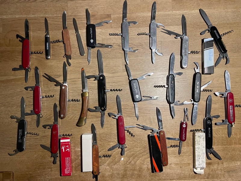 Verkaufe hier ein konvolut aus verschiedenen Taschenmesser von verschiedenen Herstellen und Formen. Wie auf dem Bild teilweise mit Verpackung. Die Messer wurden im Keller gefunden. Verschiedenen Zustand der Messer. Zustand siehe Bilder. Verkauf als Bastlerware.