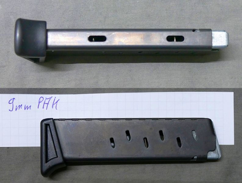 Ob es sich um ein Magazin für eine Schreckschusspistole oder eine scharfe Pistole handelt, kann nicht sicher gesagt werden. Auf dem Magazin ist leider kein Hinweis auf Hersteller oder Kaliber vorhanden.