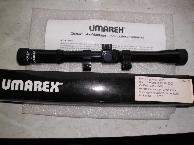 ZF für Luftgewehr. Umarex 4x20. Montage für 11mm-Schiene, Absehen 8
