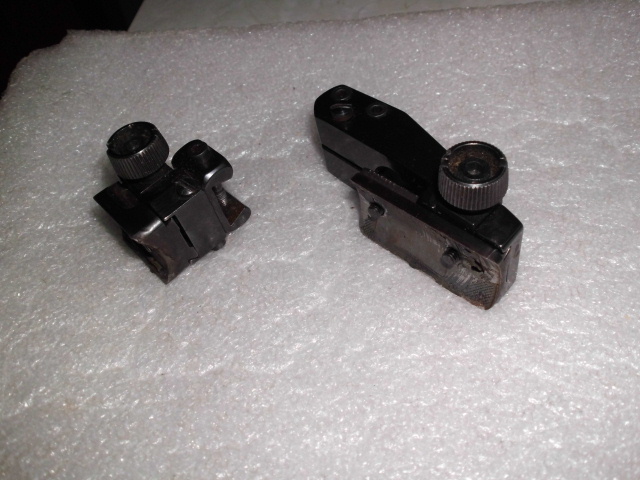Gebrauchte Kippmontageteile: 2x Sockel zum Aufschrauben/Löten/Kleben mit 3 Schrauben, die vierte fehlt und 2x Oberteile für ZF mit Prismenschiene. Keine Garantie, Gewährleistung, Rücknahme o. Ä.
