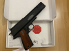HW 45 brüniert, braune Holzgriffe. Kal. 4,5.