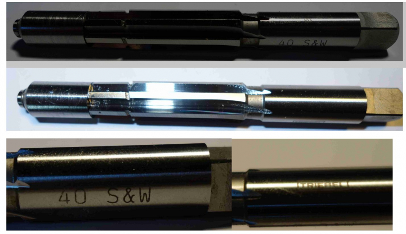 Patronenlagerreibahle .40 S&W (HSS) mit auswechselbarem Laufführungszapfen der Fa. Triebel.
