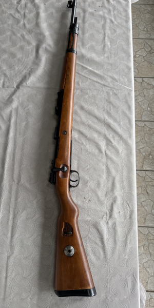 Russische Beutewaffe „X“ Teile teilweise mit Elektroschreiber markiert. Der Karabiner befindet sich in einem recht guten Zustand. Zustand bitte den Bildern entnehmen. Er wurde scheinbar mal neu brüniert und überarbeitet und hat einen Neuwertigen Schaft bekommen. Gute Schussleistung. Hohes Korn war schon verbaut bei Erwerb. Der Lauf ist matt Züge und Felder scharf siehe Foto.