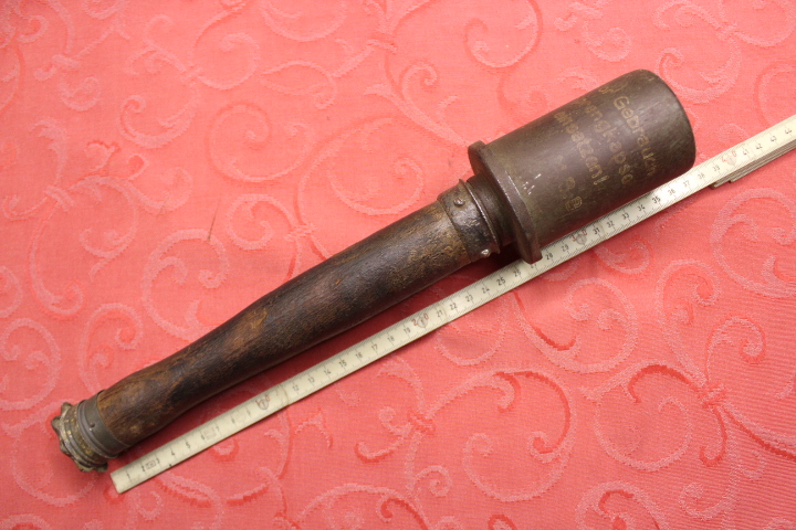 Komplett Original!! Noch die Originalfarbe. Die Beschriftung noch gut zu erkennen. Wurde einst über die Börtelung am Kopf leer gemacht. Natürlich frei von allen gefährlichen Stoffen, rein Deko.