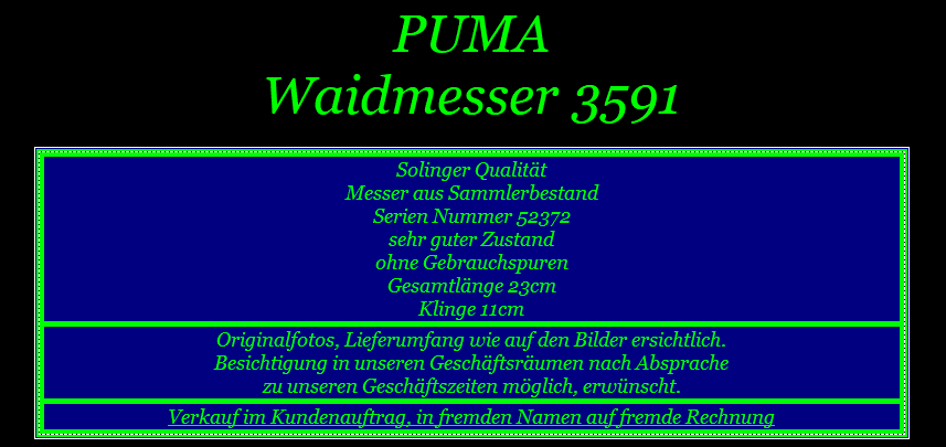 Hersteller: PUMA GmbH IP Solingen, An den Eichen 20-22, 42699 Solingen, Germany Kontakt: Tel.: +49 (0)2851-5896-50, Mail, info@pumaknives.de