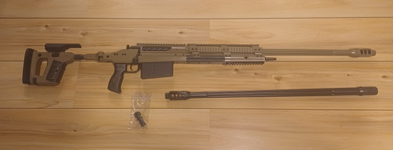 Zum Verkauf steht eine Voere X3 mit X4 Hinterschaft im Kaliber .338 Lapua Magnum. Inklusive ist ein weiterer Lauf im gleichen Kaliber mit zusätzlichem Verschlusskopf. Dazu gibt es noch einen Drehmomentschlüssel zum Wechseln des Laufes und ein Hartschalenkoffer mit waffenentsprechenden Inlay.