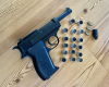 P38 Schreckschusspistole aus Vollmetall, Marke Brand Bruni BBM ME 38 P mit einigen Schiessbechern und Knallpatronen, abschraubbarer Schussbecher, made in Italy, 8mm..